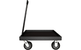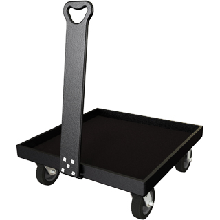 Featuring two swivel and two rigid 6" flat-free tires, this cart is designed to go over the rough terrain of outdoor sports fields while carrying a load up to 350 pounds. The 27" x 27" bed size is large enough to accommodate most single 18" subwoofers. The tray bed is designed with a solid bottom so gear will not slip through and become unstable while transporting.